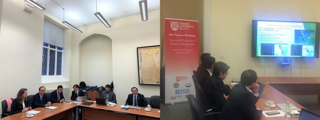 On 4 December 2019, the 2nd UK-Vietnam Workshop on Vertical IoT Solutions in Disaster Management was held at Queen’s University Belfast (QUB), Belfast, UK. It is our privilege and great pleasure to welcome the participants from Vietnam and UK who are here to exchange the experience and share the knowledge and research results on the field of IoT solutions in disaster management.